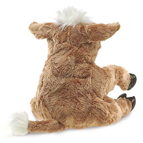 Easily animate the antics of this engaging brown cow plush hand puppet.