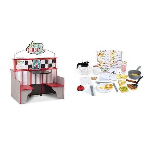 Melissa & Doug Pretend Play Wooden Star Diner Restaurant With 40+ Accessories and Play Food